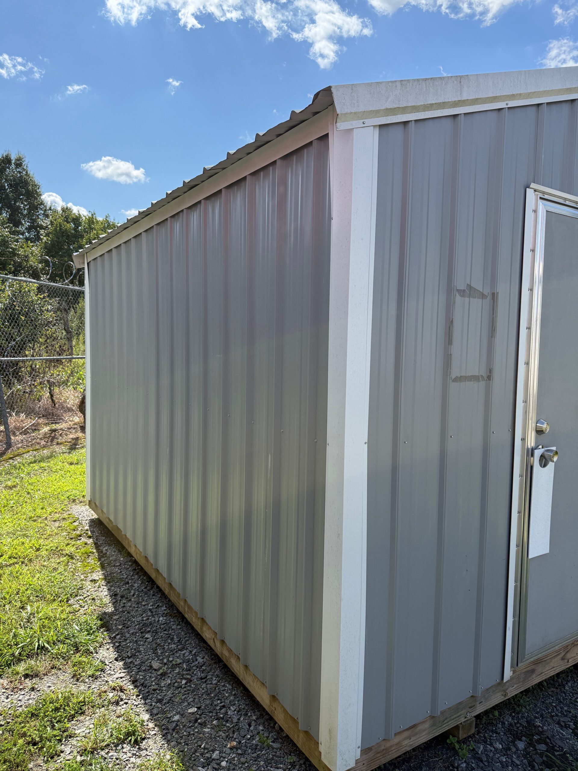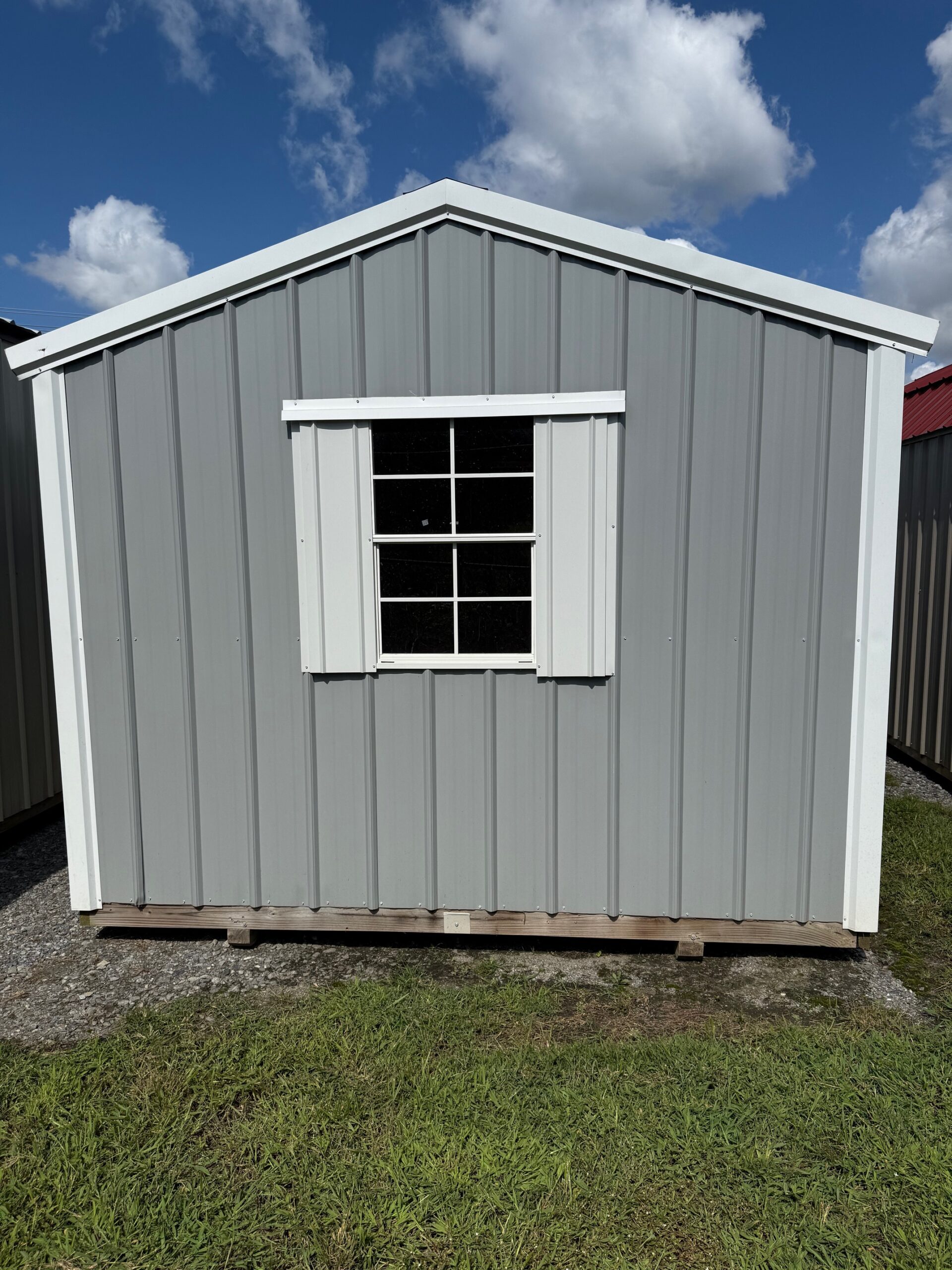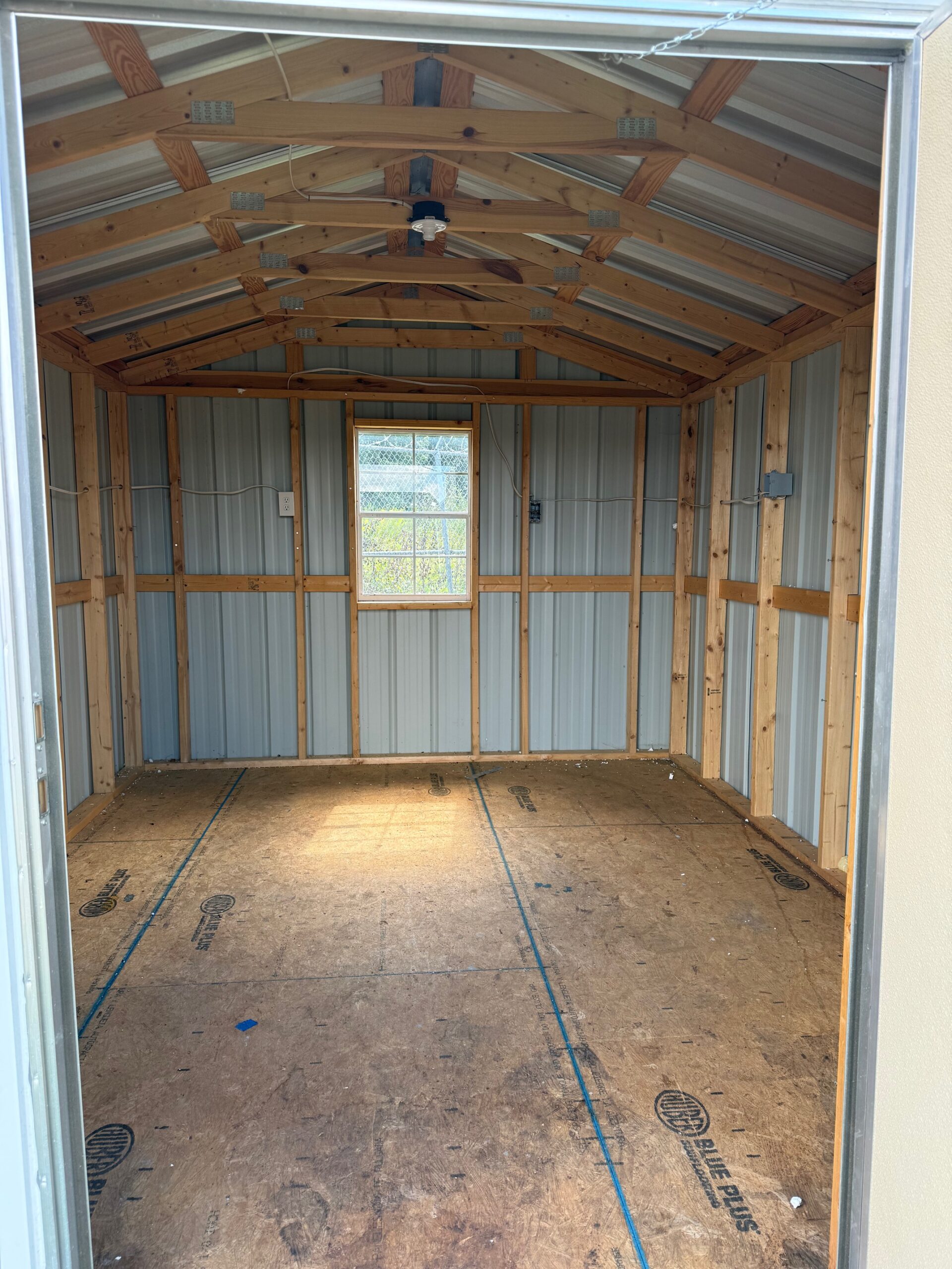 Pre-Owned 10×12 Steel Sided Storage Shed with Window and Electric