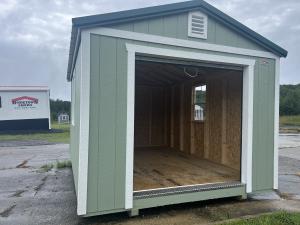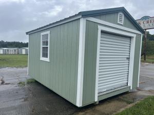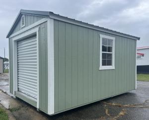 New Wood Sided A-Frame Shed with 6×6 Roll Up Door