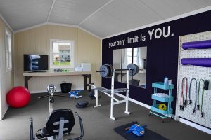 Staying In Shape. If your gym is closed or you simply want to avoid the drive to burn those calories, create your own home gym right in your back yard. Choose from many options to match your home, and then let the light in with large windows or a 15 light door. You’ll stay cool while you work up a sweat with air conditioning. You can even choose a rubber mat floor for those heavy weights. Epoxy surfaces will help you easily clean and keep your work out space sanitary. Ask us about adding custom built in shelving for your equipment as well.