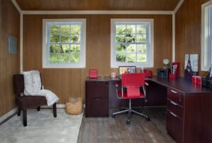 A New Work From Home. During the past few months many of us have moved our offices to our homes, where our families and their many distractions abound. A standalone home office is easier than ever with a Lifestyle Structure from Hometown Sheds. These office buildings come with Duratemp, siding options, doors, windows, customized trim, and much more. Create custom shelves or desks, stairs, and choose from various floor styles. You’ll work in comfort in the climate controlled interior with heating and air conditioning. Literally step outside your home into your new office, away from all the hustle and bustle of family traffic. Think of the time you’ll save on the commute!