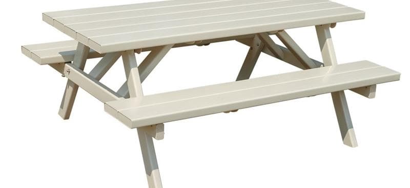 One Stop Shop For Outdoor Gatherings. A durable and beautiful shelter from Hometown Sheds is perfect for covering large gatherings, but we can also help you complete the package. We offer three shades of vinyl picnic tables to add seating options to your shelter. Unlike traditional wooden picnic tables, there’s no need to stain or paint them and no worrying about splinters in little fingers. They’re easy to clean up after all of those art projects, too. In either 3’X6’ or 3’X8’, they’re large enough for adults as well as plenty of kids.